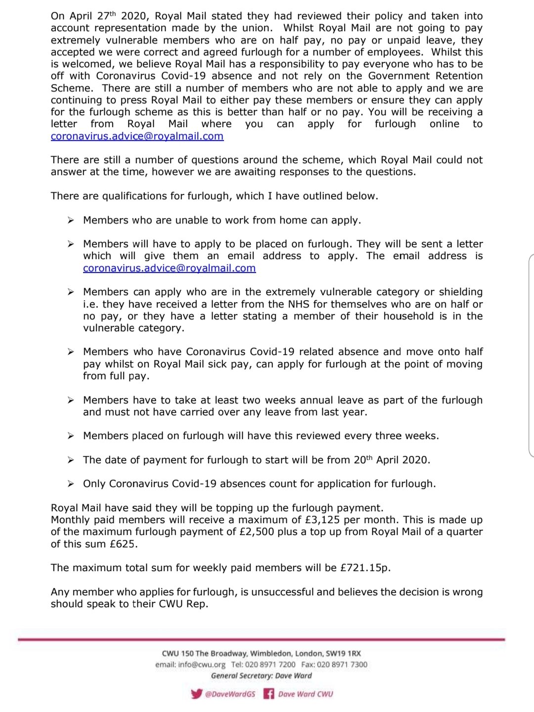 Dave Kennedy On Twitter Ltb 228 20 Royal Mail Sick Pay Policy Furlough 3 Pages Thecwu